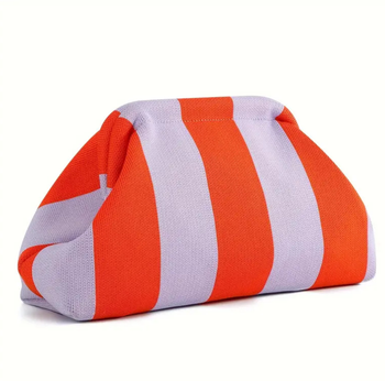 कस्टम लोगो महिलाओं के धारीदार कॉस्मेटिक बैग चिक बहुमुखी क्लाउड डिजाइन बुना हुआ क्लच बहु-रंग महिला क्रोकेट पर्स